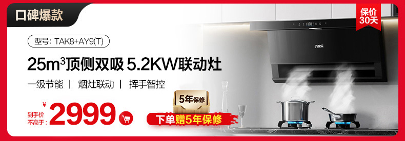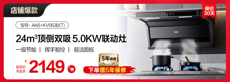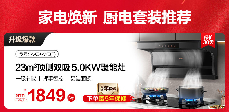 温馨提示:活动爆抢中,套装中的油烟机AK5为库存紧张,新的一批库存预计12月26日左右到仓,拍下的亲们放心,我们将会在货物到仓之后陆续为您安排发出!感谢您的理解与支持,如有疑问可咨询在线客服!