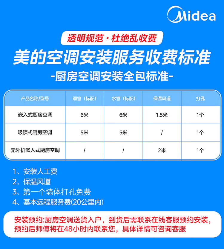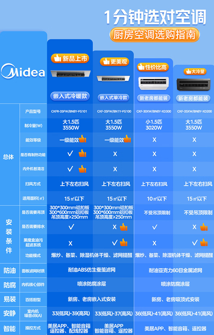 • 美的厨清凉厨房空调,隐藏式安装更美观,安装简便,新房老房都能装,大冷量闷热厨房说再见