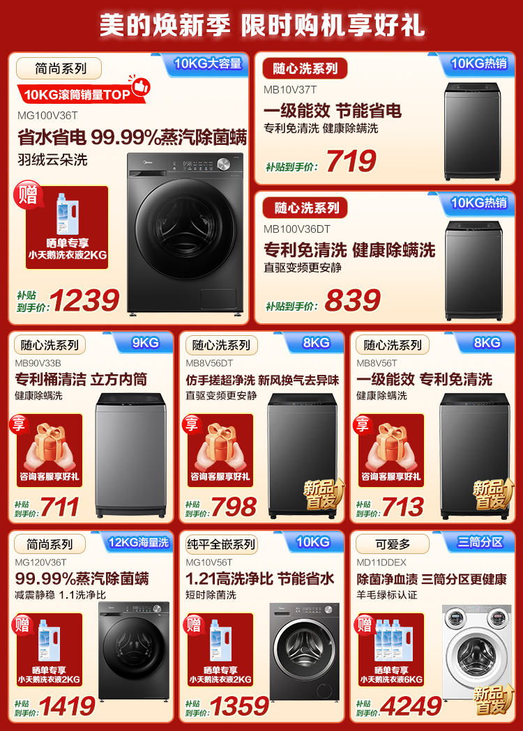 • 新品8公斤直驱洗衣机MB8V56DT,性价比之选→