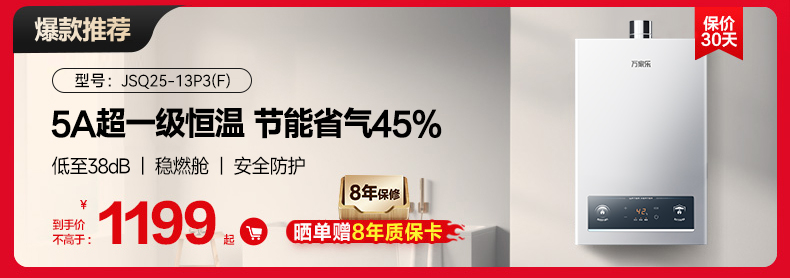 • 万家乐恒温王燃气热水器JSQ30-16P3 PRO(F)天然气一级恒温16升增压水伺服一级节能防冻