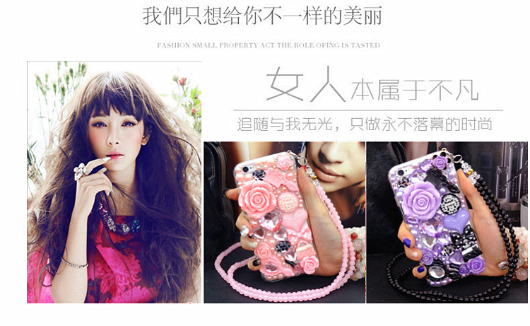 • 摩洛 水钻蔷薇花透明软壳手机壳保护套带珠链 适用于VIVO V3/V3A/V3L/V3M