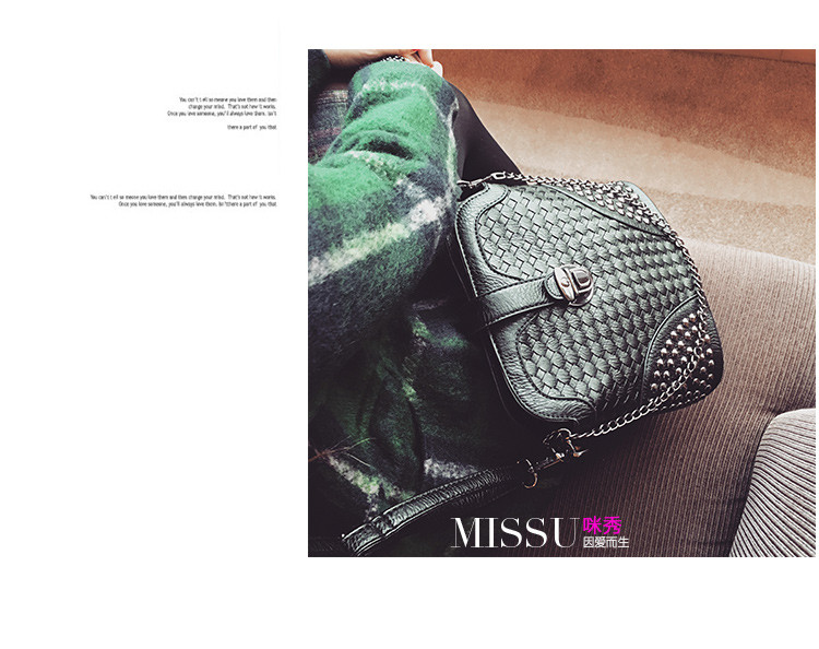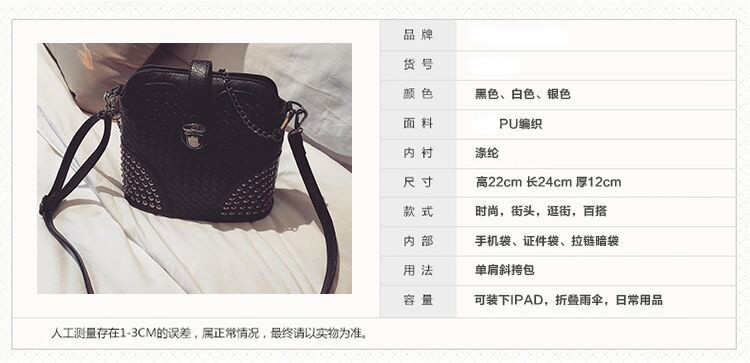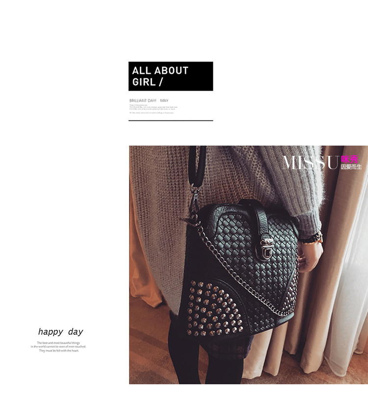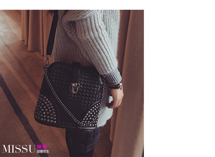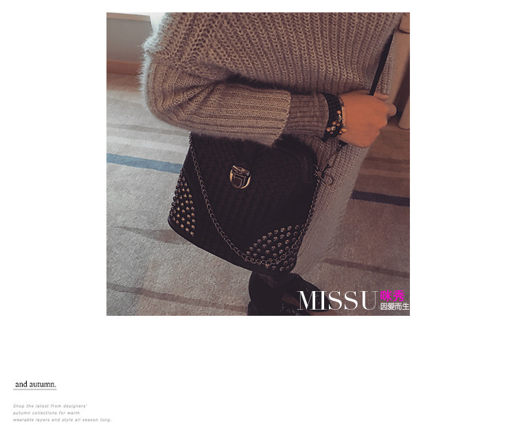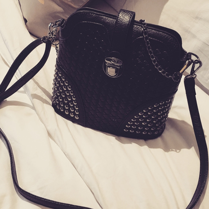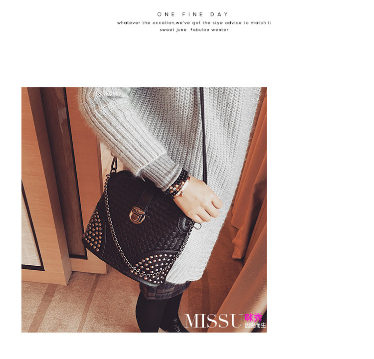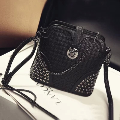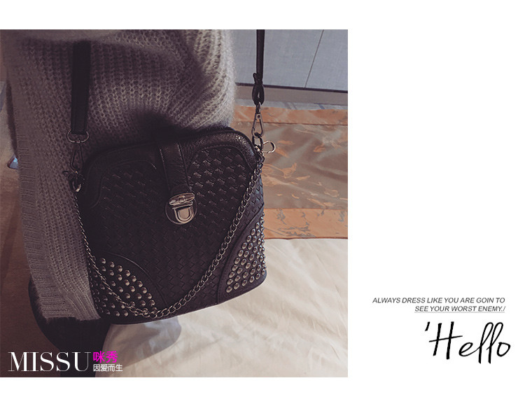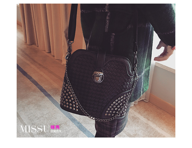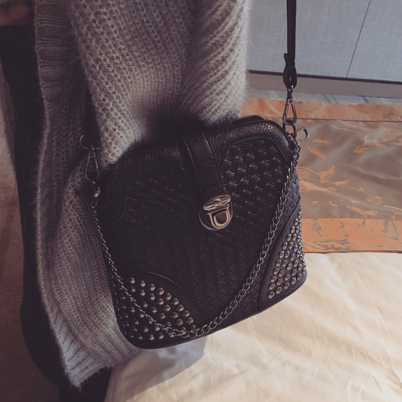 • 薇思黛 2016新款 韩版潮流时尚编织铆钉贝壳包小包女士时尚单肩斜挎包女包包潮