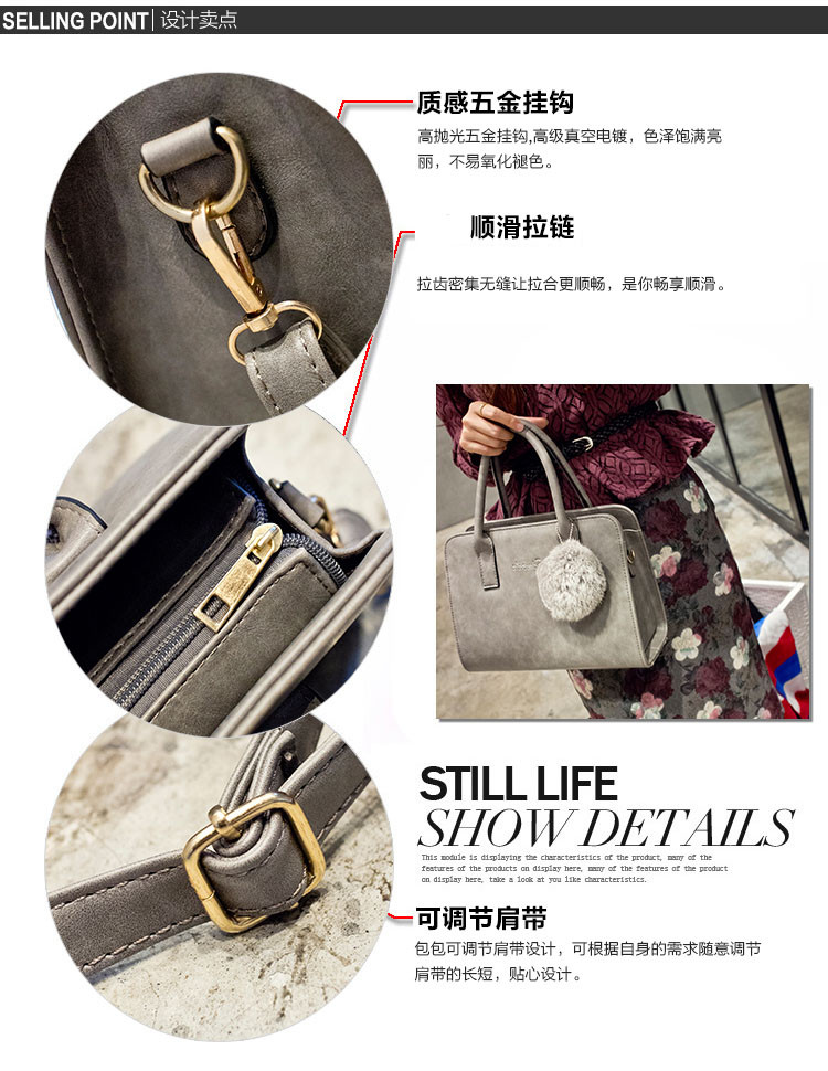 • 薇思黛 2016新款 秋冬欧美手提包复古磨砂贝壳包单肩包斜挎女包手提包女包