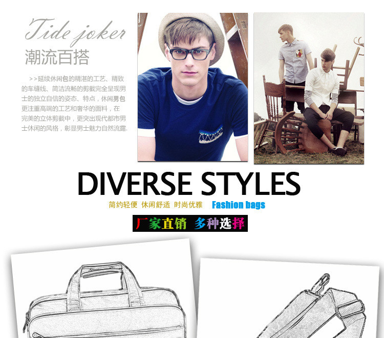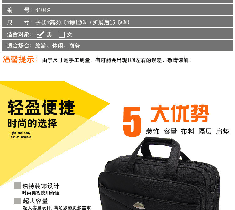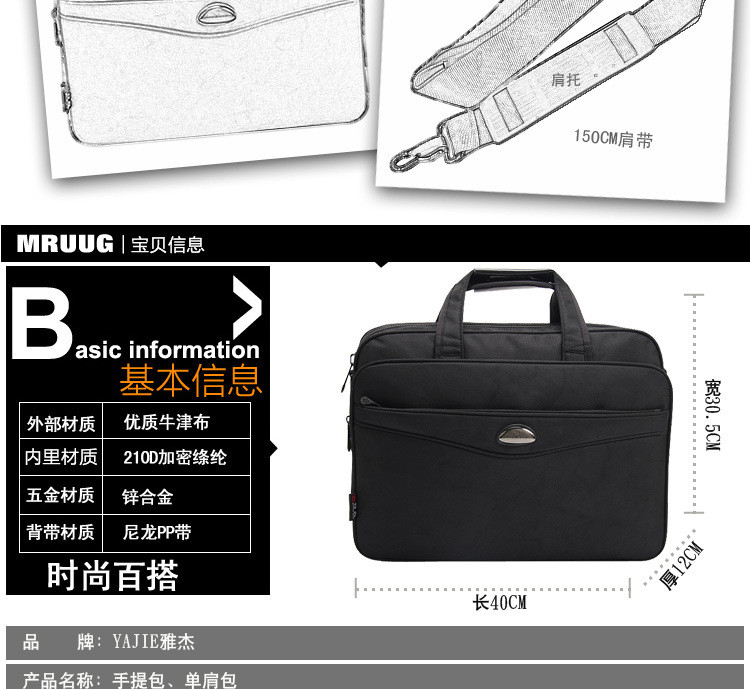 • 薇思黛 2016新款 商务电脑文件包横款单肩手提斜挎三用包公文包男牛津布单肩包