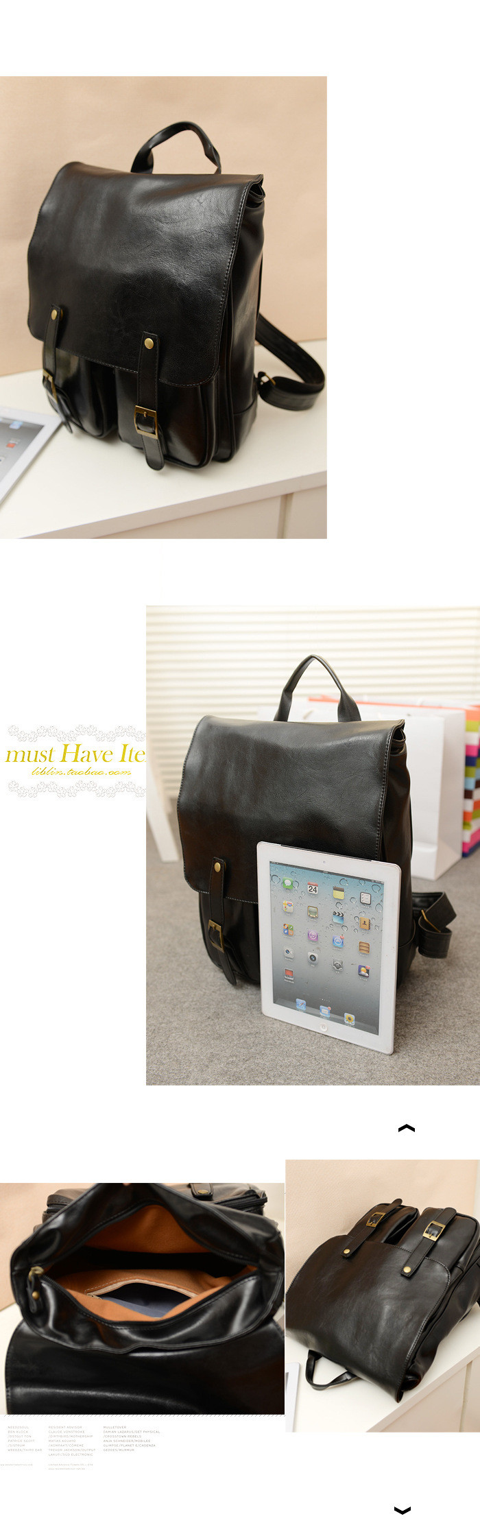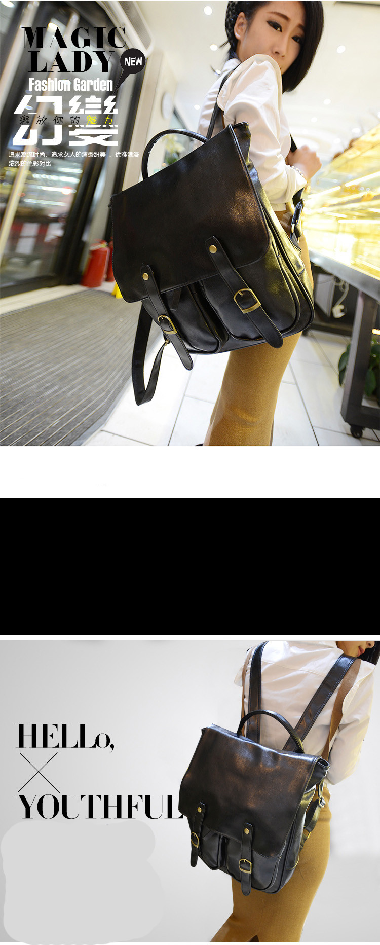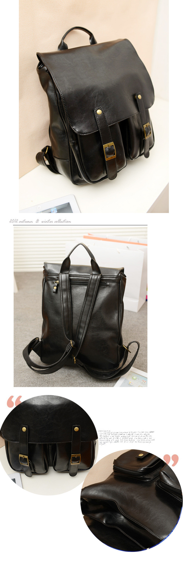• 薇思黛2016新款 韩版情侣双皮学院风潮包新款复古双肩包扣亮皮pu书包女包
