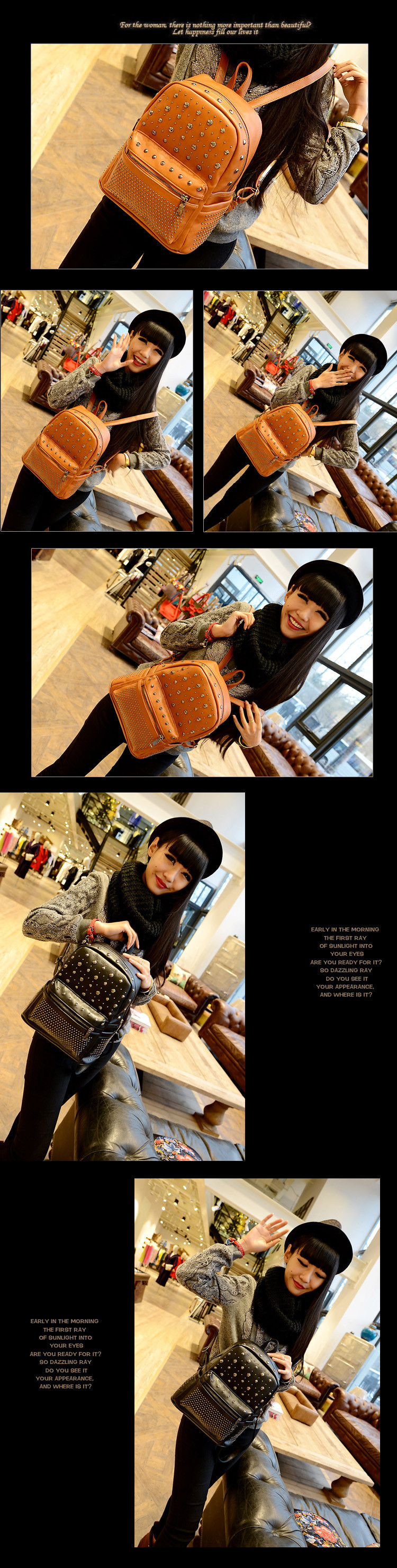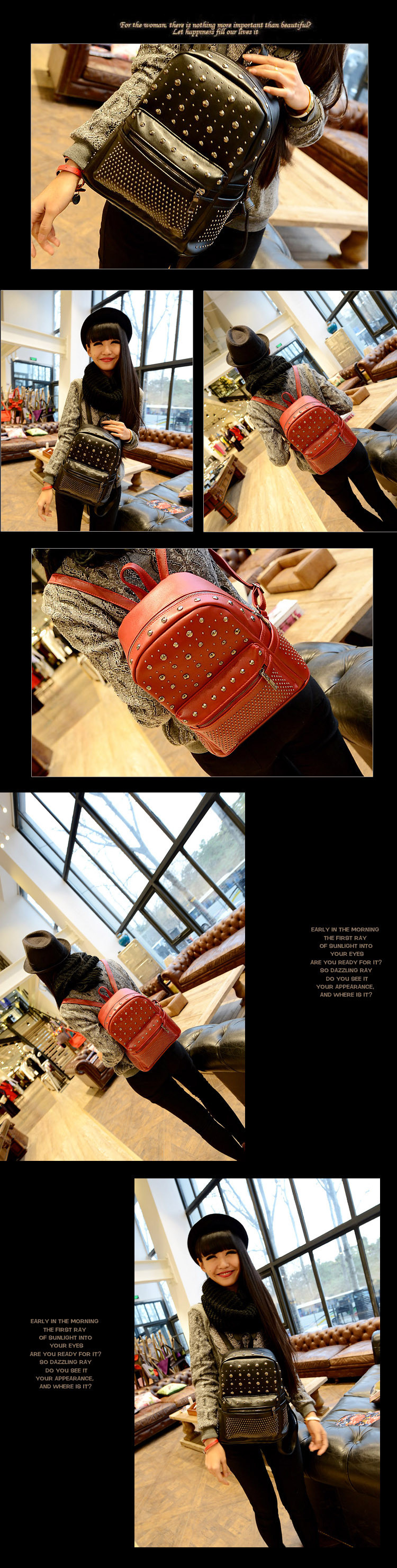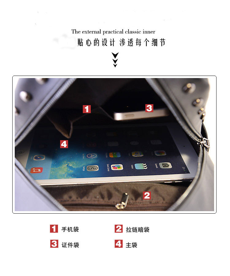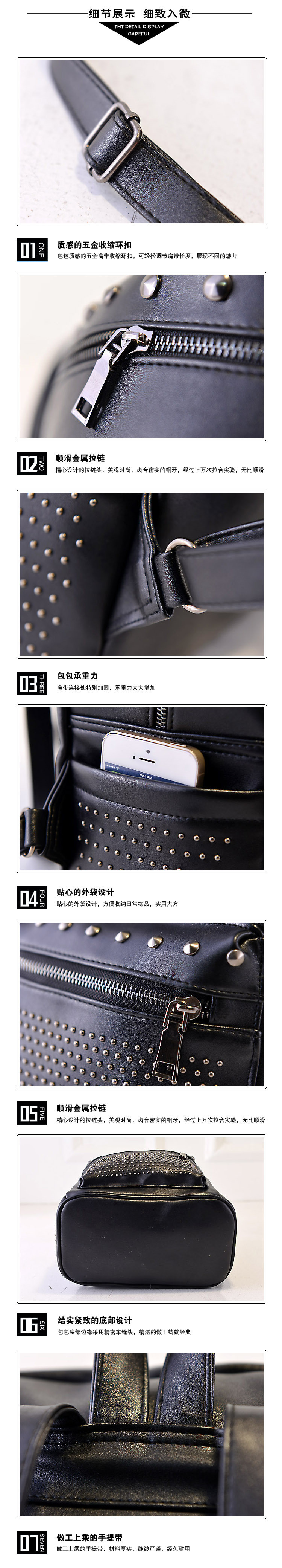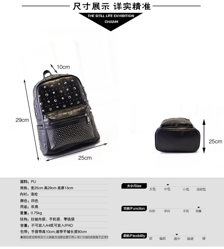 • 薇思黛 2016新款 韩版休闲书包时尚旅游背包铆钉双肩包