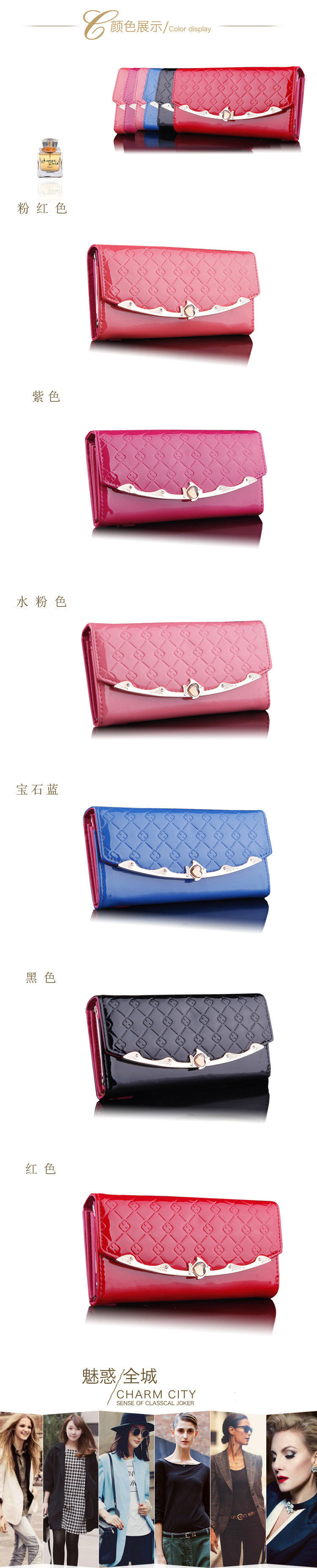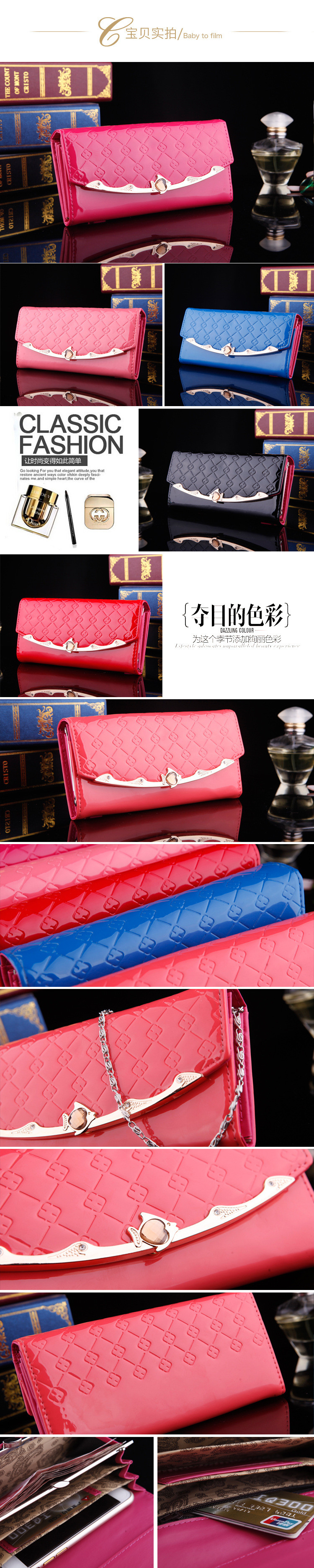 • 薇思黛 2016新款 韩版女士长款钱包夏季亮皮包漆皮格纹钱夹