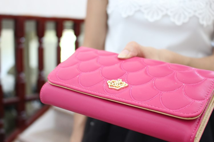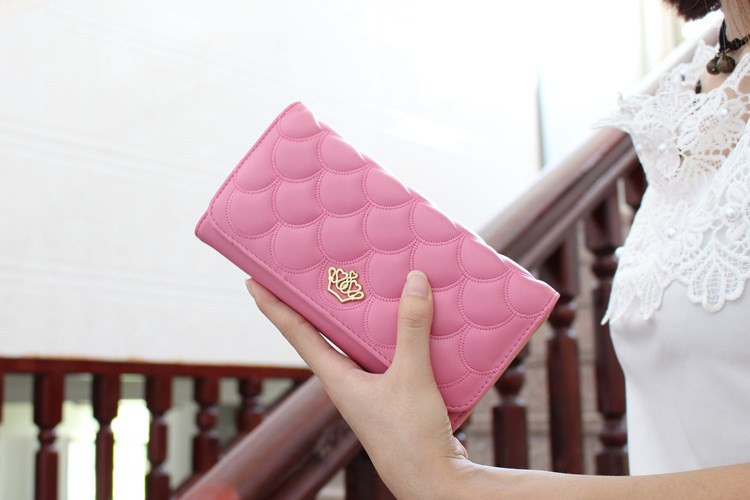• 薇思黛2016新款 欧美女士钱包菱格长款票夹皇冠漆皮压花手拿女包
