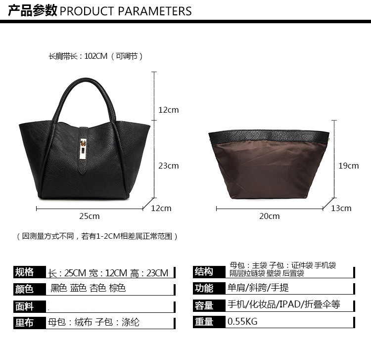 • 背包方式:单肩,斜挎,手提