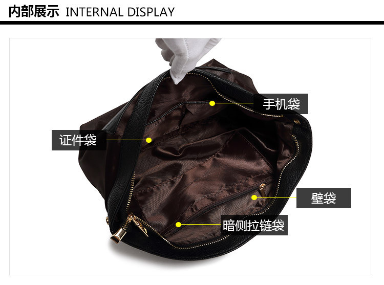 • 内部结构:手机袋,证件袋,拉链暗袋
