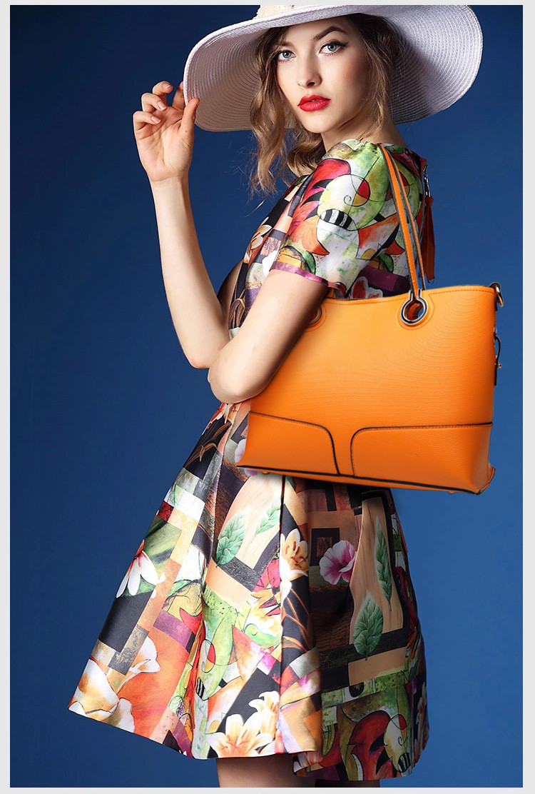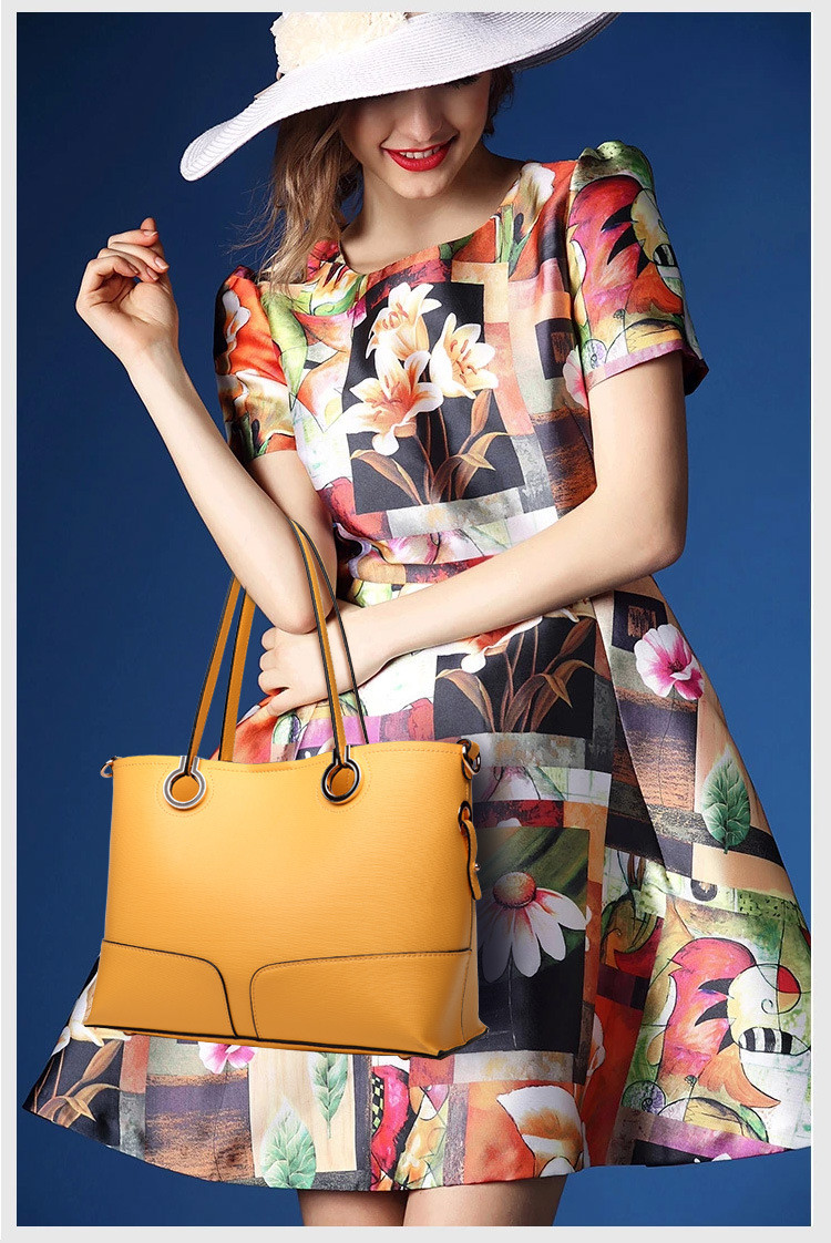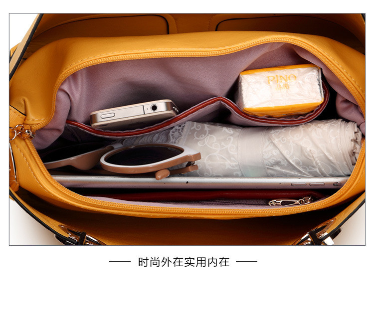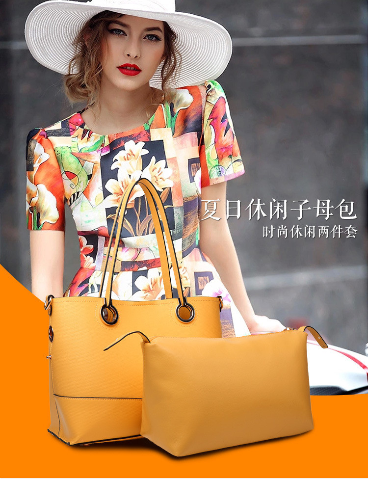 • 薇思黛 2016新款 欧美风范手提单肩斜跨包包女包十字纹PU皮子母包二件套