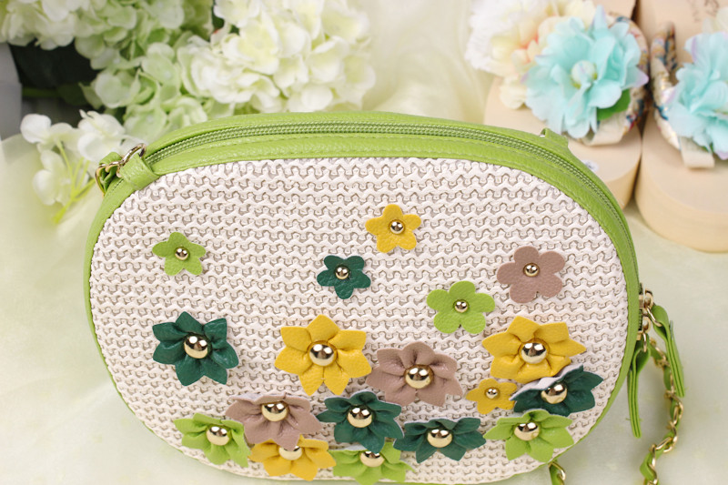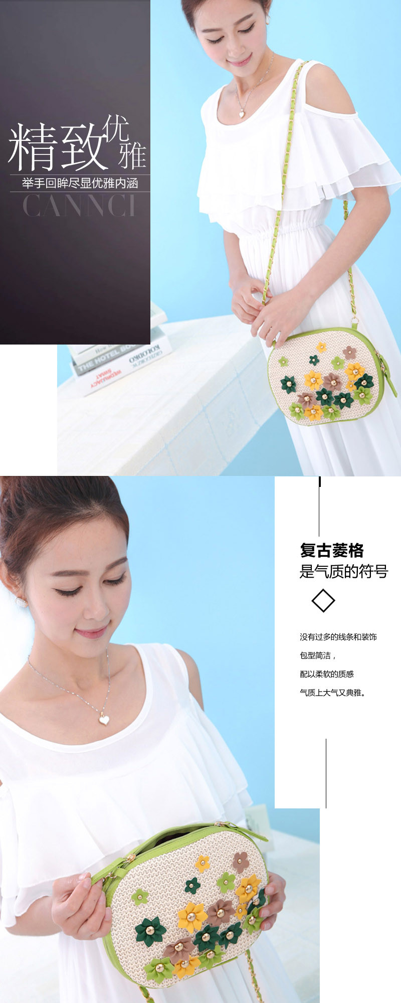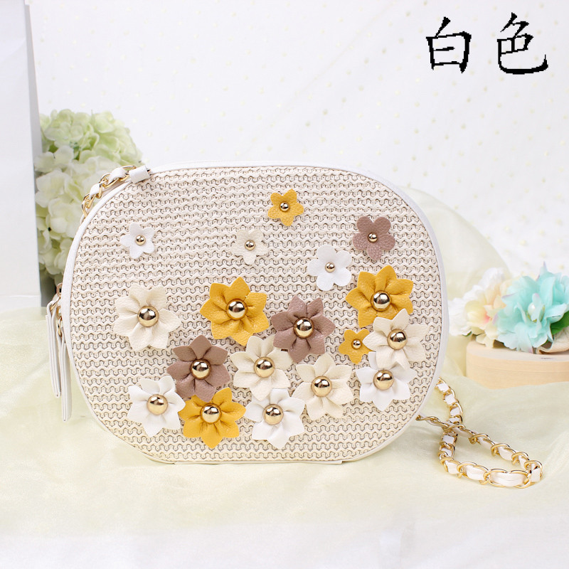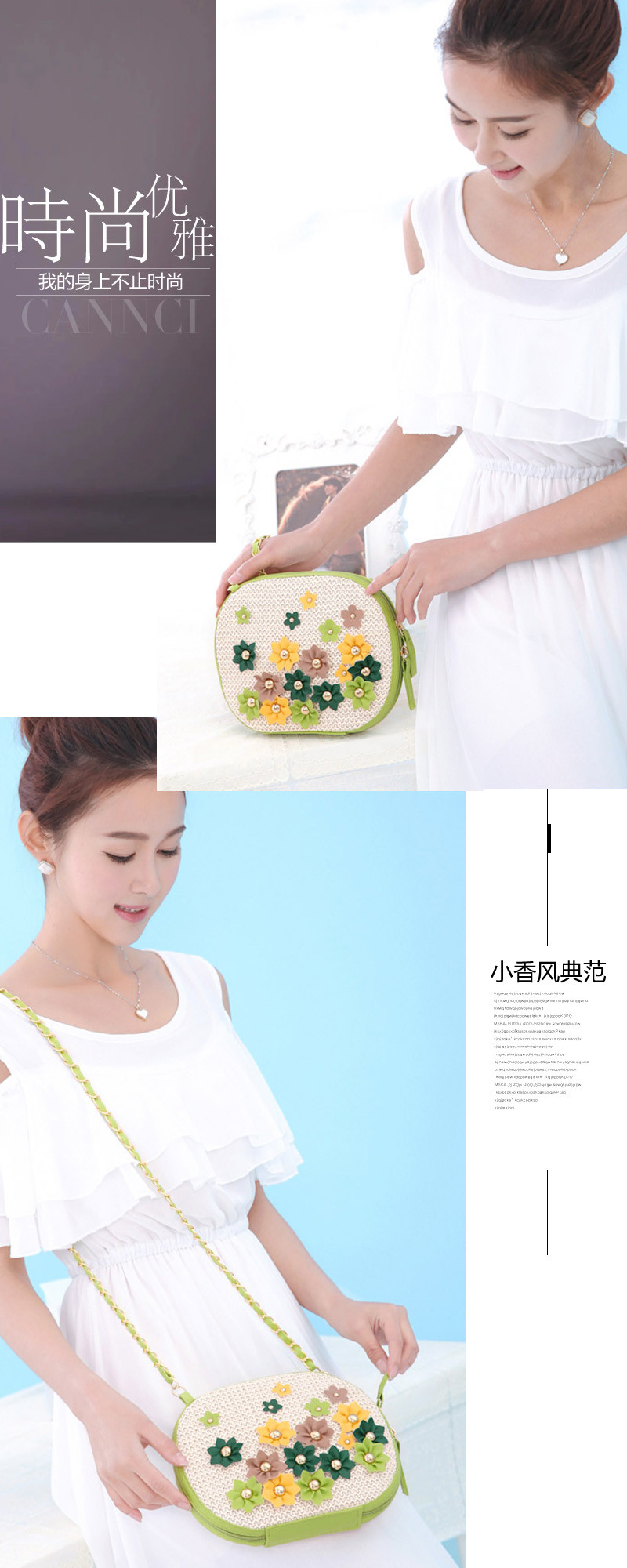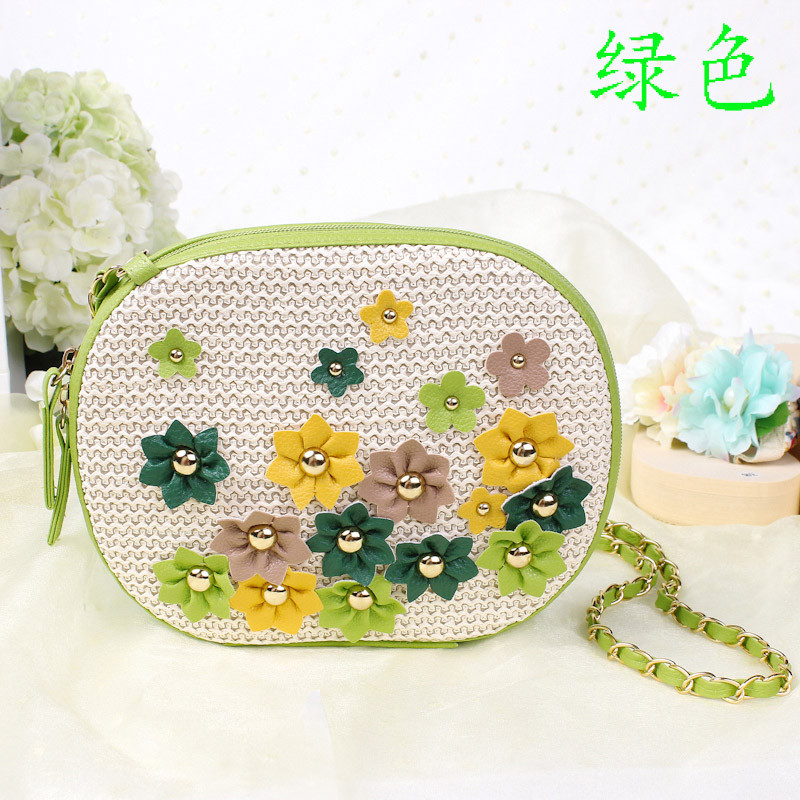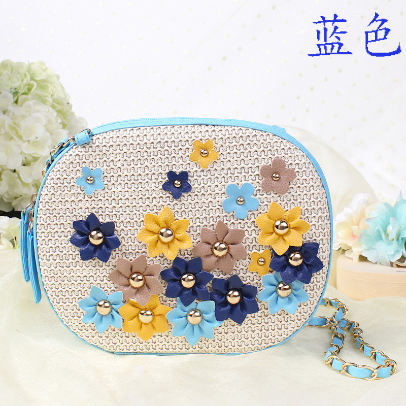 • 薇思黛2016新款草编包斜跨编织包小皮花沙滩包草包可爱淑女包藤包