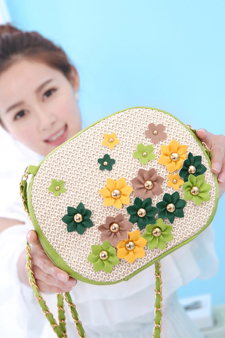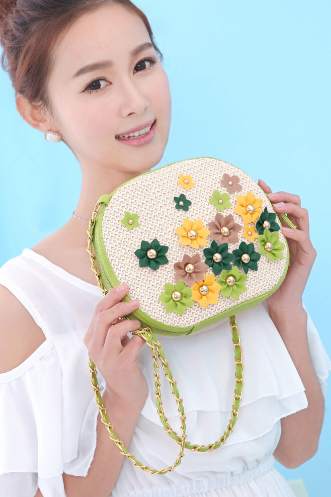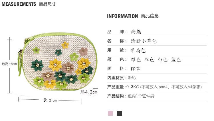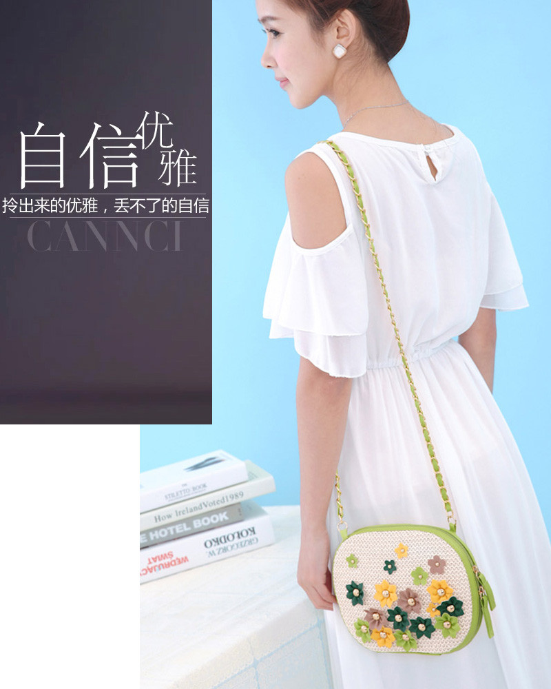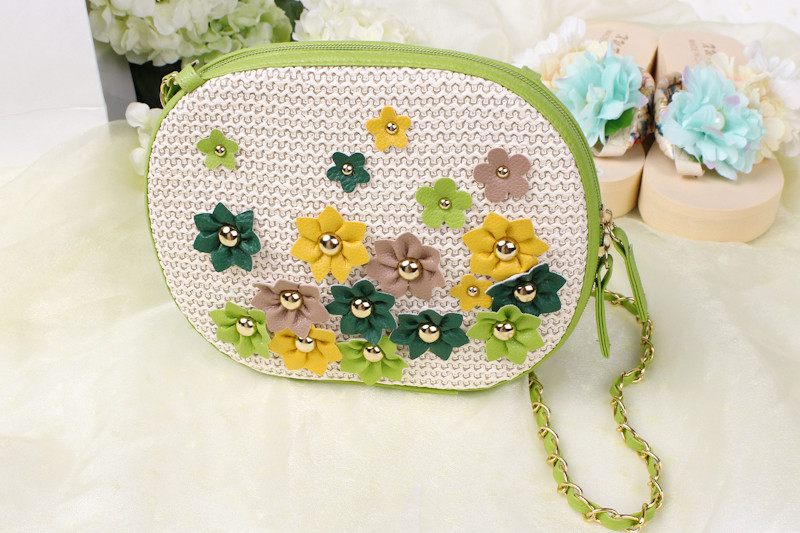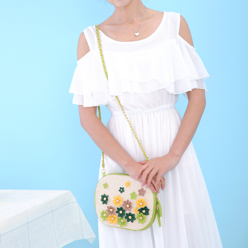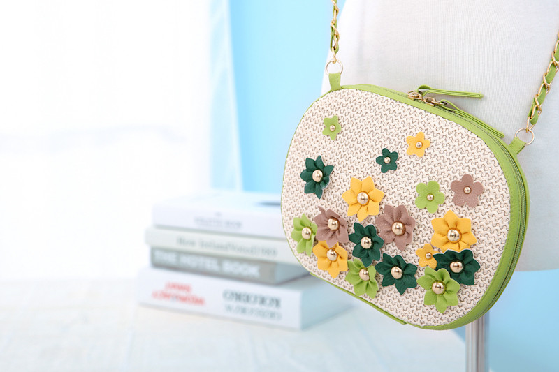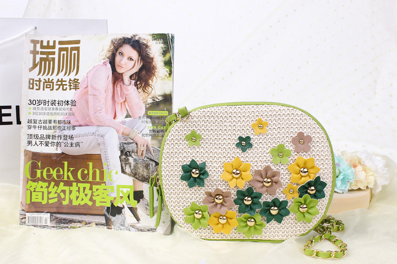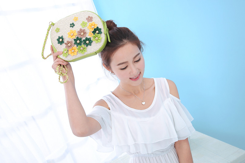 • 薇思黛2016新款草编包斜跨编织包小皮花沙滩包草包可爱淑女包藤包