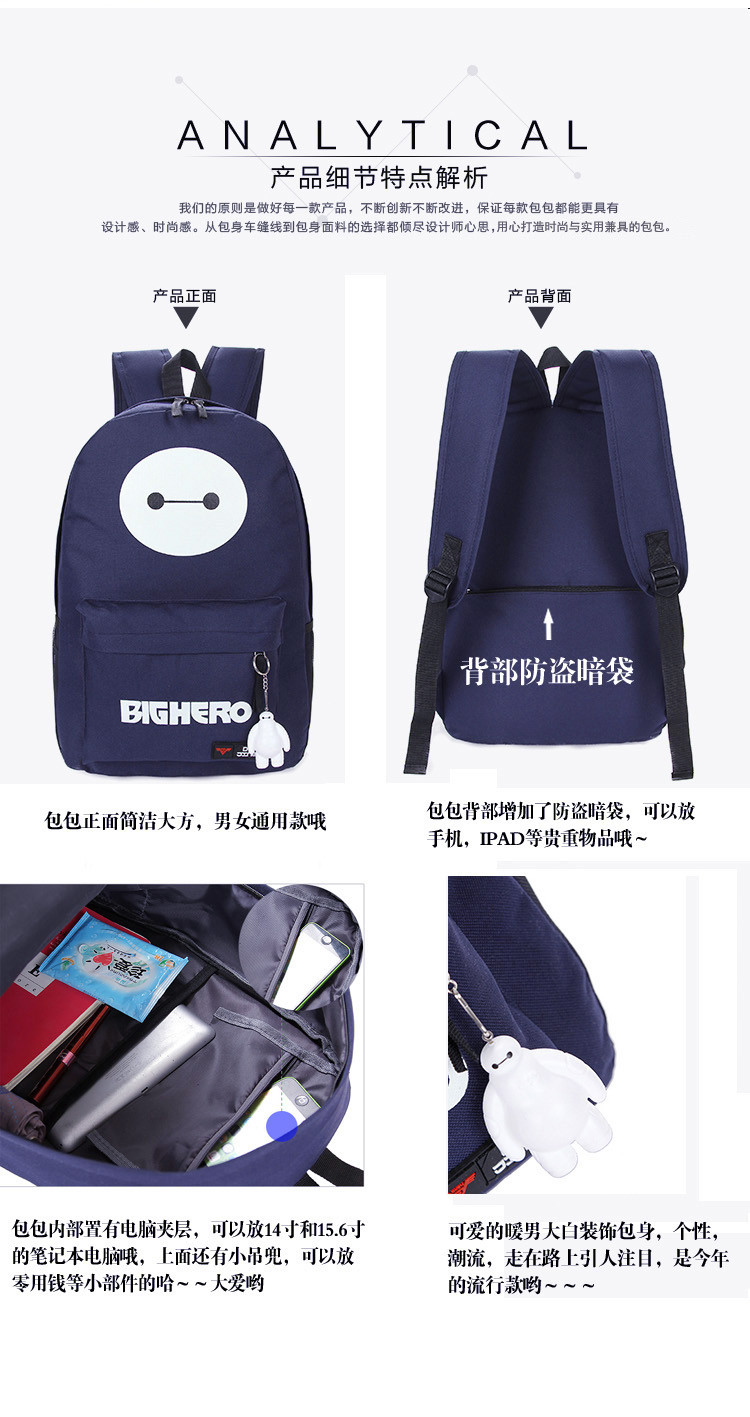 • 薇思黛 新款大白卡通双肩包背包男女背包韩版学院风学生书包