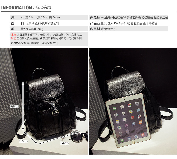 • 薇思黛2016秋季新款双肩包女包背包pu皮包休闲双肩包女韩版双肩背包潮旅行女包