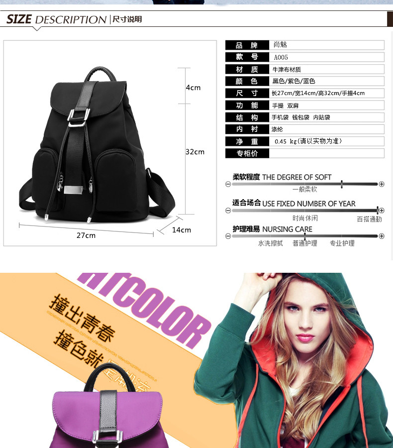 • 薇思黛2016新款双肩背包韩版女包牛津布双肩书包背包手提包旅游包