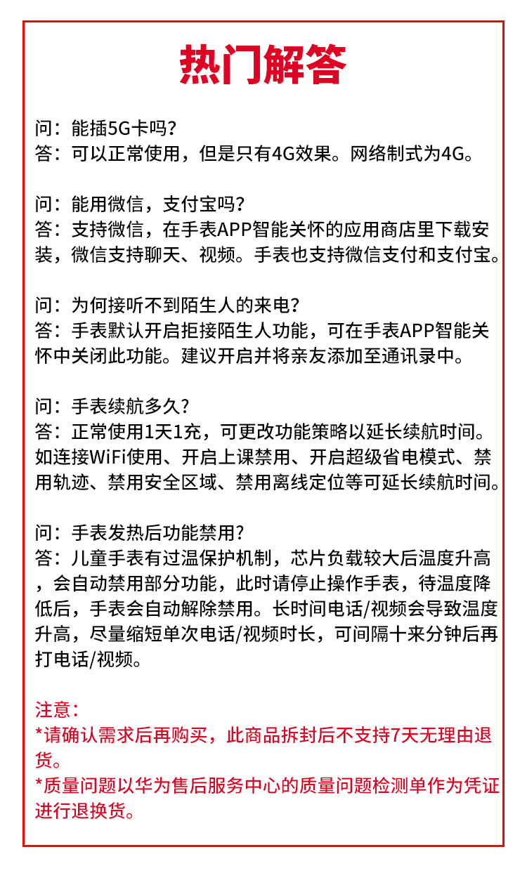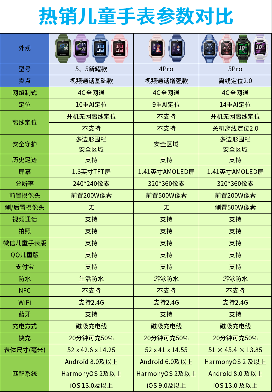 • 尼龙表带;离线定位2.0;14重AI定位;高清双摄,视频通话,微信QQ;上课禁用;游泳防水