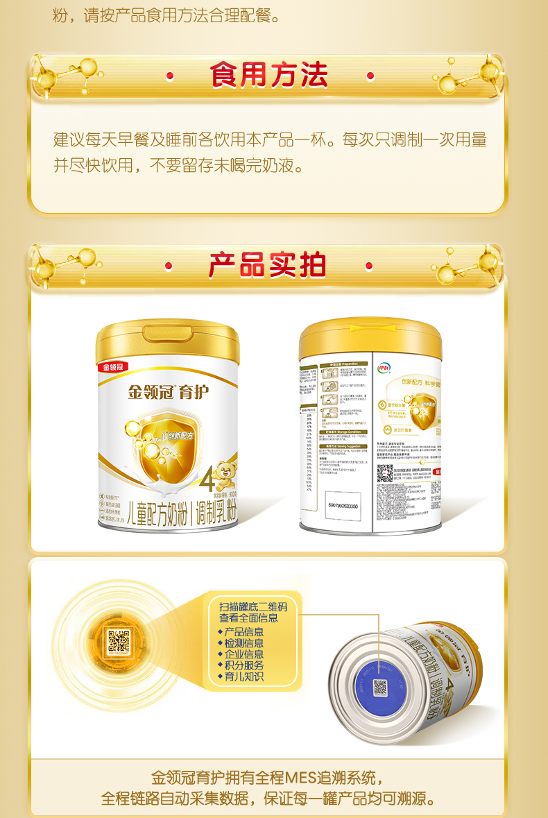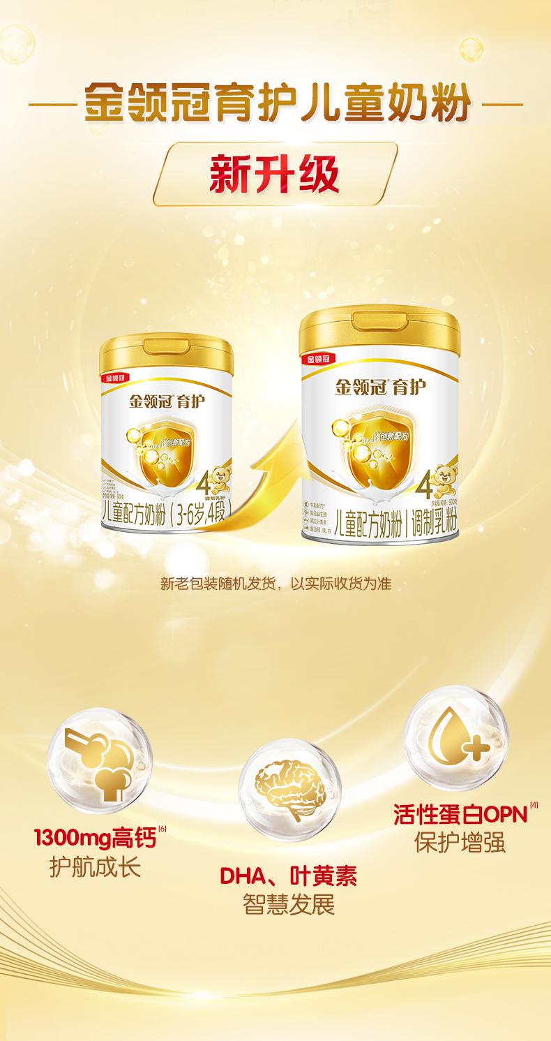 • 伊利(YILI) 金领冠系列 儿童配方奶粉 4段900克(3-6岁儿童适用)(新旧包装随机发货)
