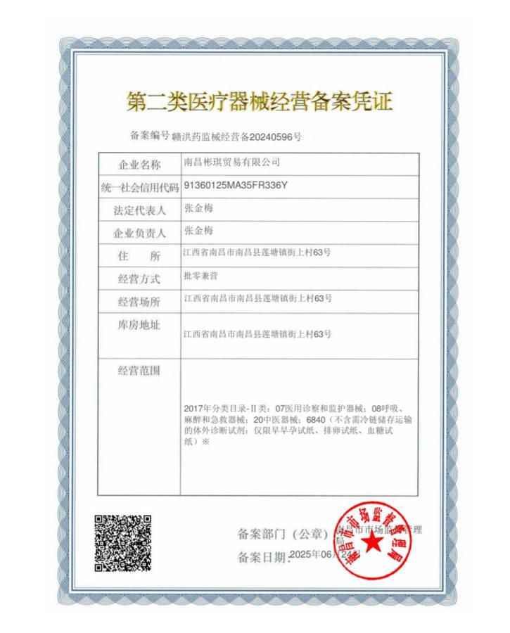 医疗器械二类经营备案号:91360125MA35FR336Y  网络销售备案号:洪行审械网备20200267号